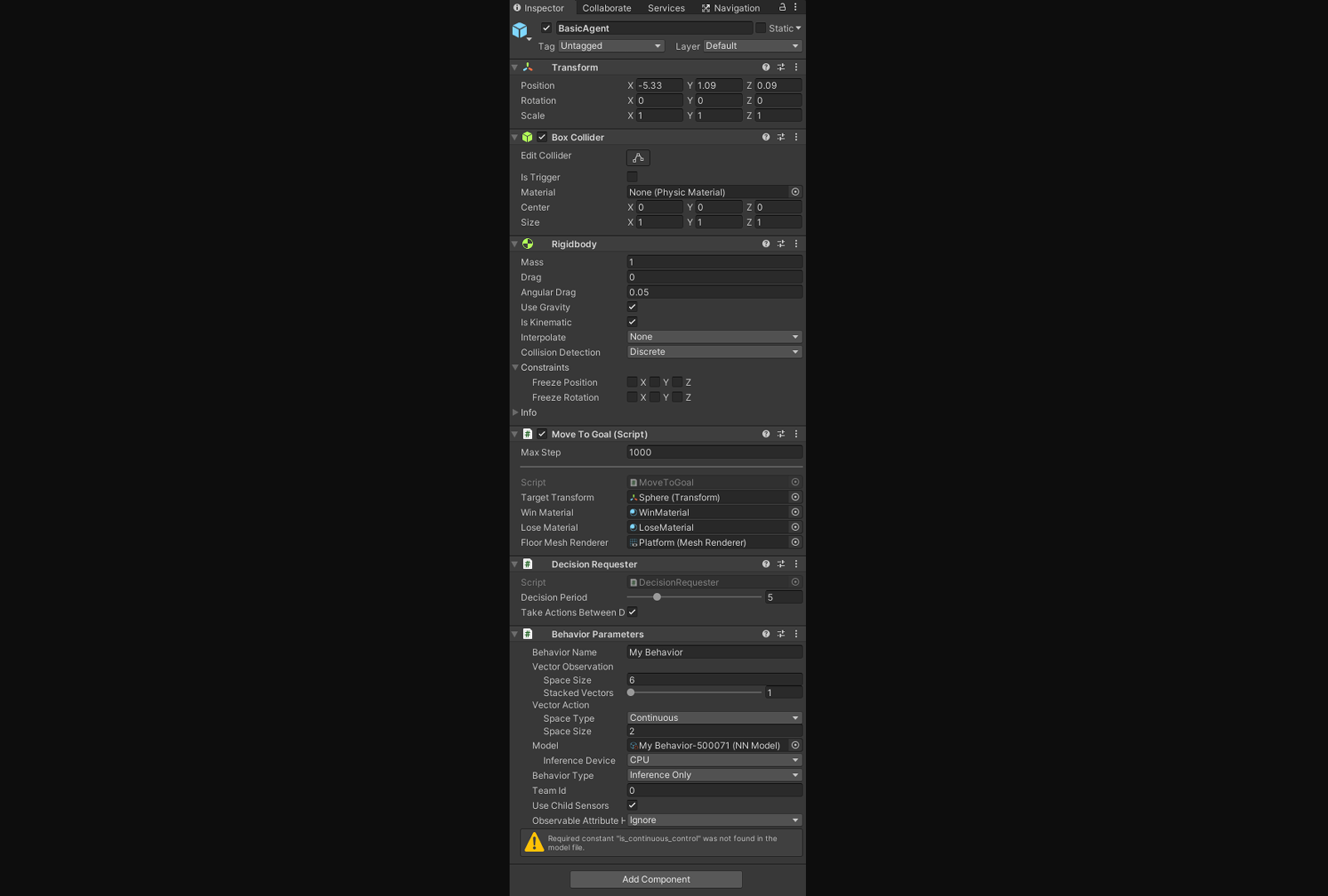 This project was developed for Artificial Intelligence subject in IPB. It was a solo project and for this task we had to follow various tutorials that helped us reinforce our knockledge of how physics of Unity work and it culminated in us choosing what type of AI project we wanted to do.