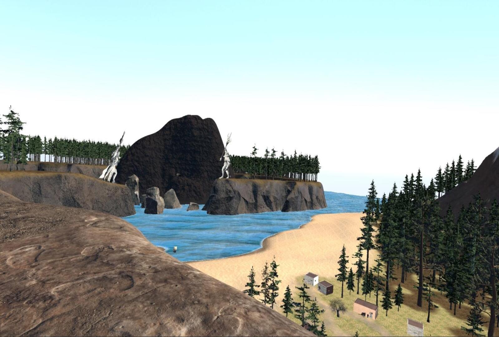 In the above images we find screenshots of the final 3D environment. Here we can see how the topographic map evolved into the 3D space and how the village goes into the sea and to the vulcano. Finally we get a snippet of the vulcano area where the little maze was.