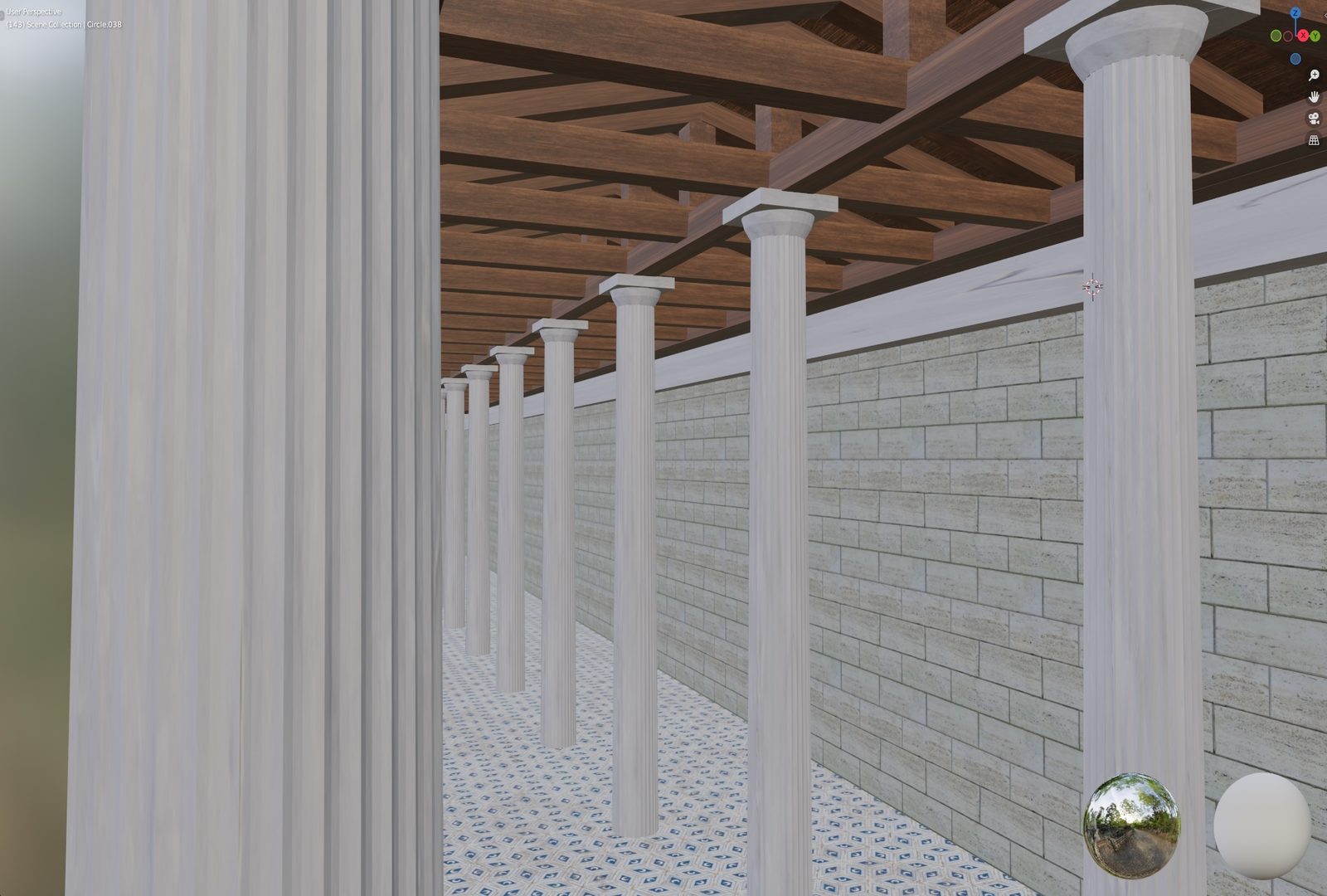 After taking into a count many references from ancient greek infrastructures, mostly Stoas I started the process of modelling by positioning the collumns with the correct spacing and alignment. After that I built the base and singular wall.