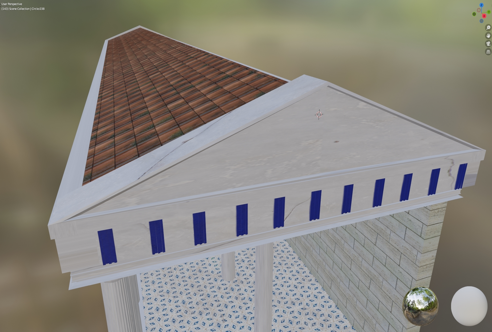 After that I placed the ceiling and started working on the outer edge that surrounds the ceiling and the 2 big pediments. Once that was concluded I worked on the details and texturing of the object in order for it to be game ready.